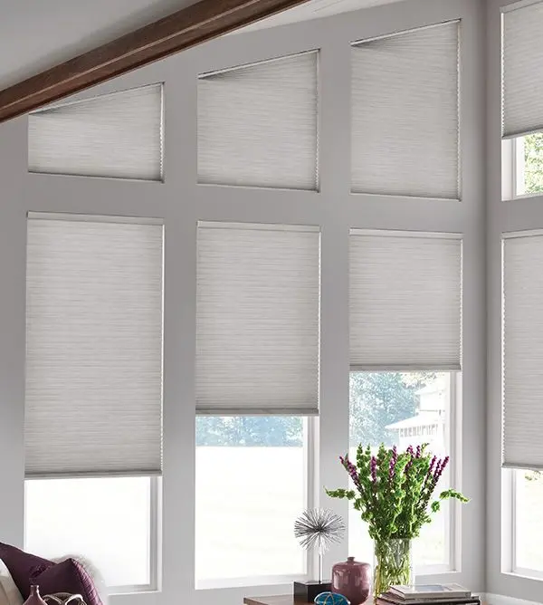 Honeycomb shades, also known as cellular shades, bring together modern design and practical comfort. With a variety of fabrics, textures, and light-filtering options available, they easily complement any interior style. Their signature cellular construction helps insulate your windows, keeping your home cooler during summer and warmer in winter, all while improving energy efficiency.