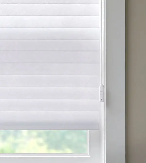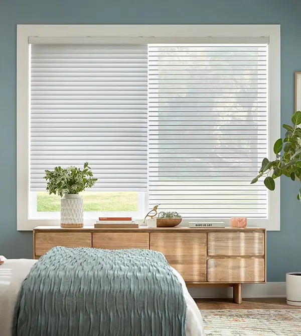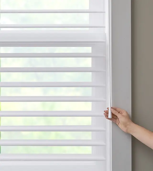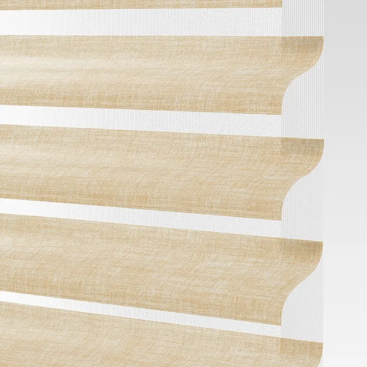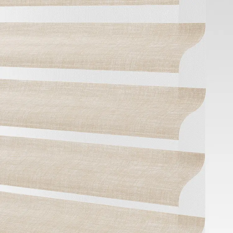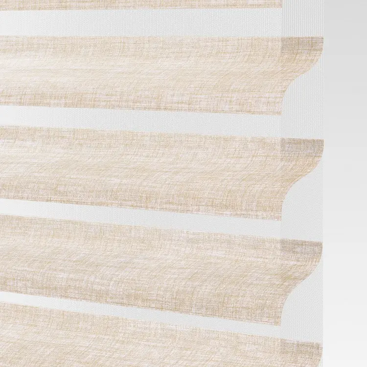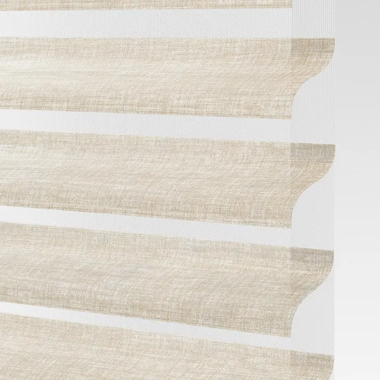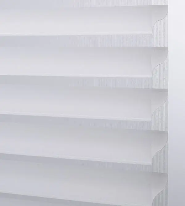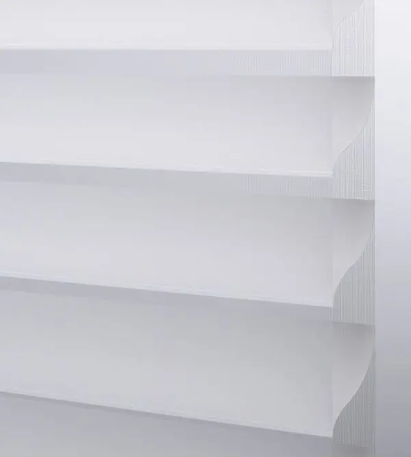 Our sheer shading system blends the soft beauty of light-filtering fabric with the functionality of a blind, giving you complete control over the ambiance of your space. Fabric vanes are suspended between two sheer layers to create subtle, adjustable brightness. During the day, tilt the vanes open to enjoy your view while maintaining privacy. At night, simply close the vanes for full privacy and comfort.